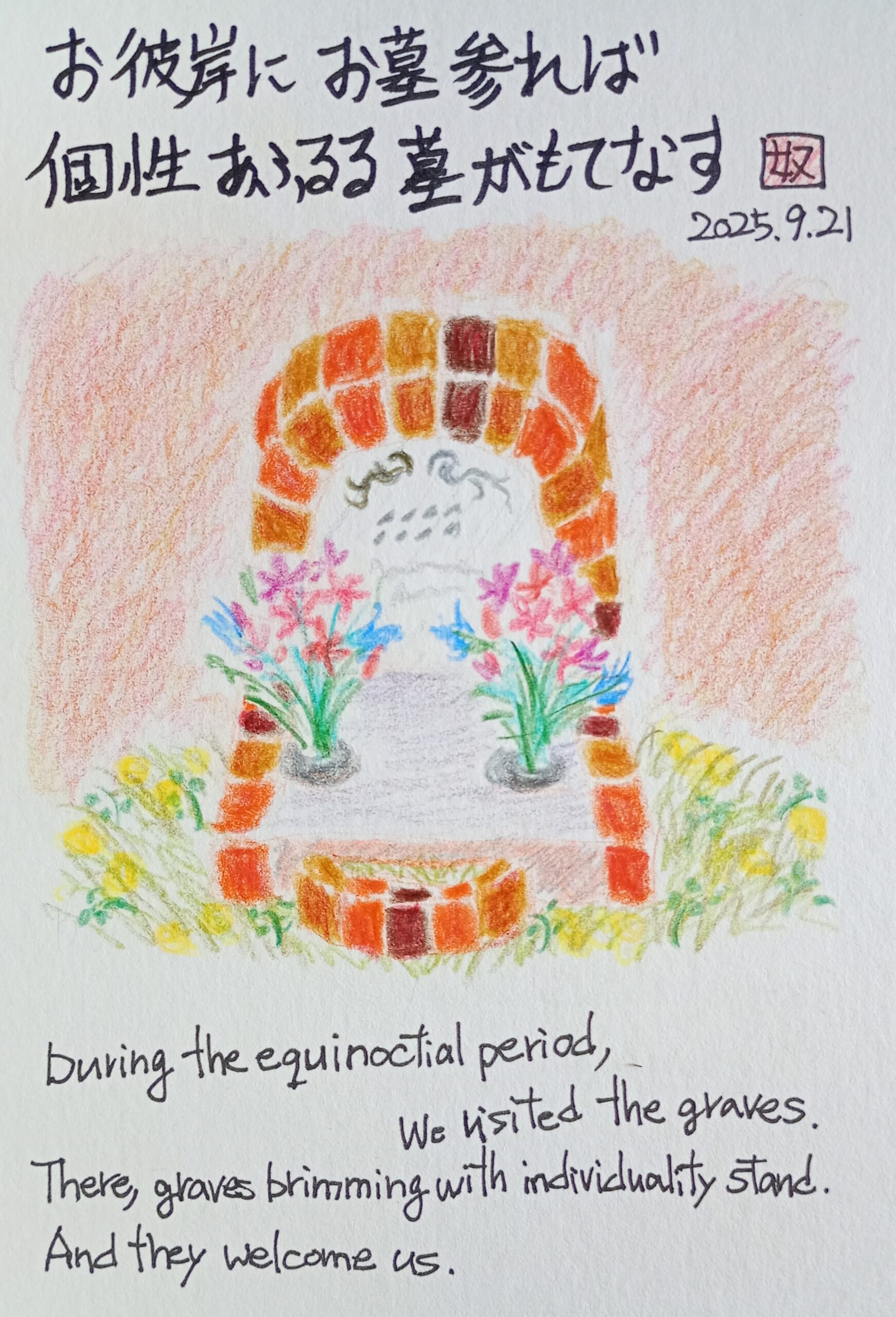 お彼岸に お墓参れば 個性あふるる 墓がもてなす