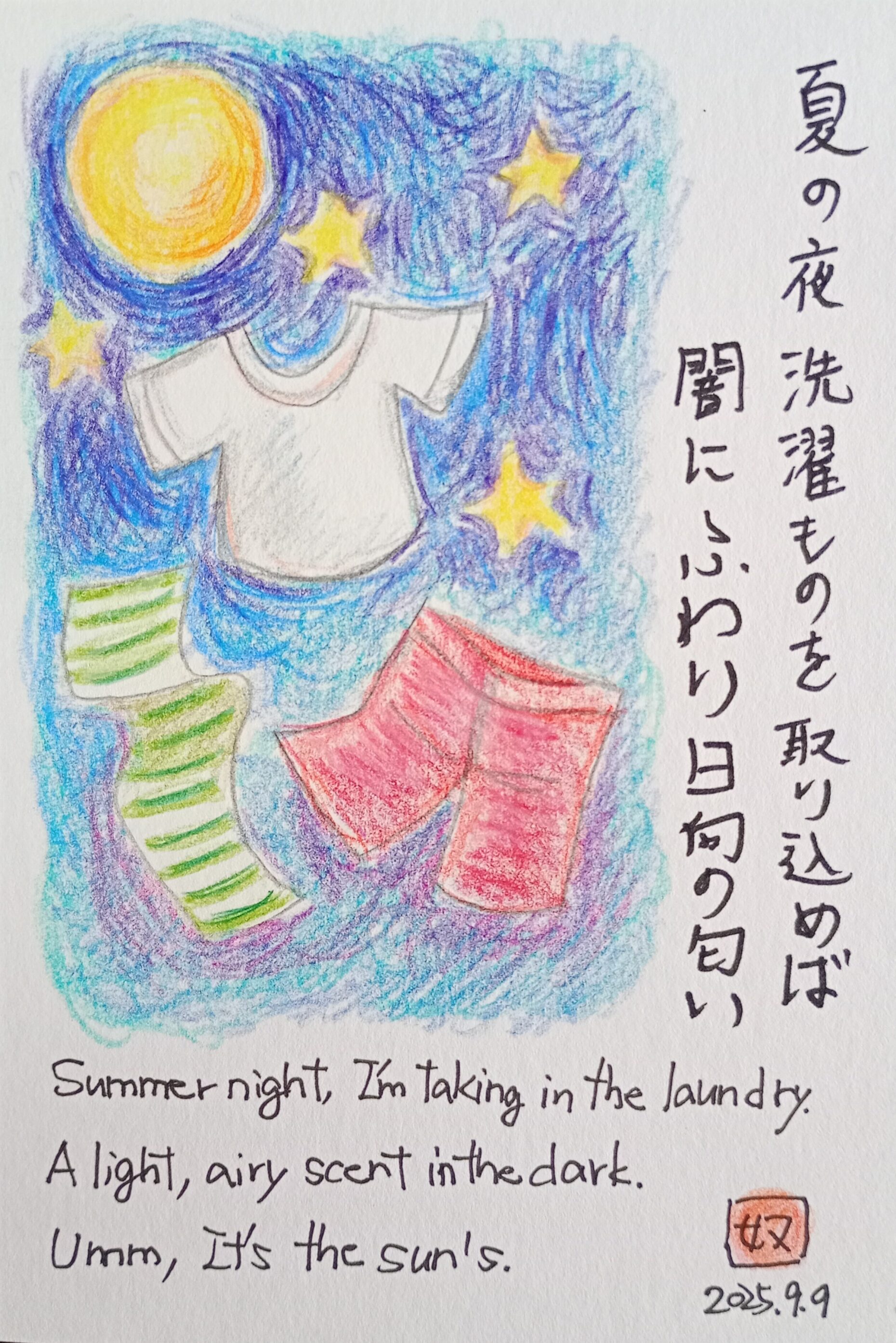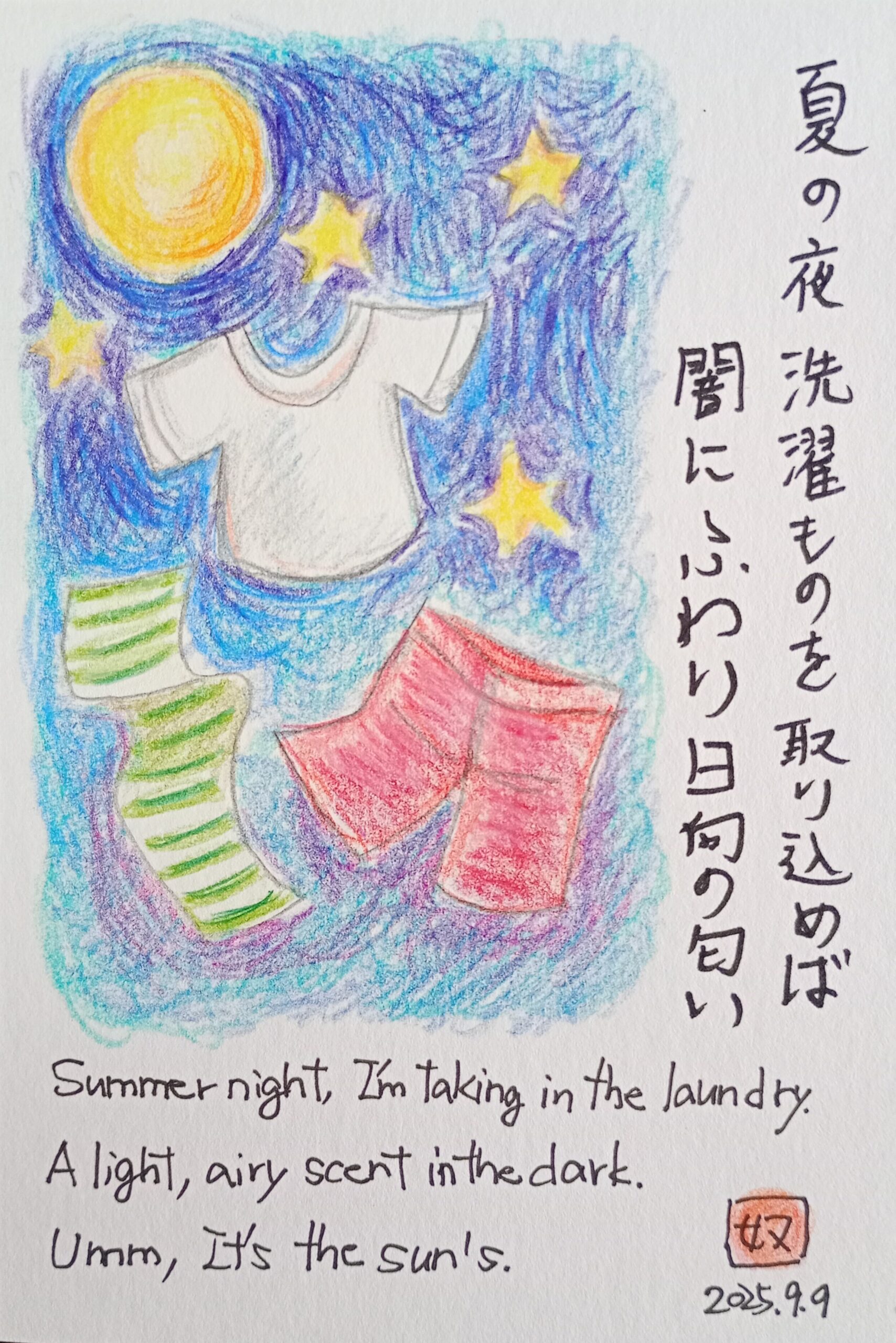 夏の夜 洗濯ものを 取り込めば 闇にふわり 日向の匂い