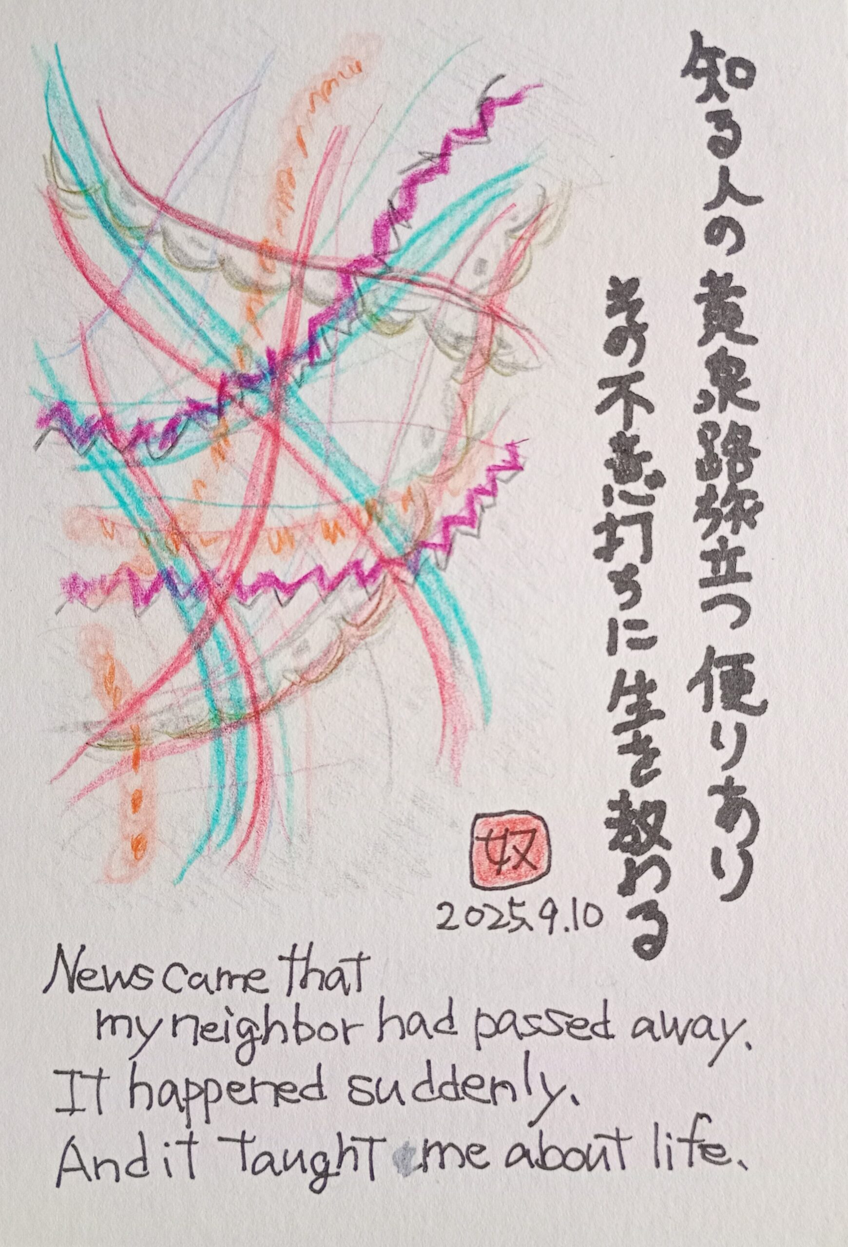 知る人の 黄泉路旅立つ 便りあり その不意打ちに 生を教わる