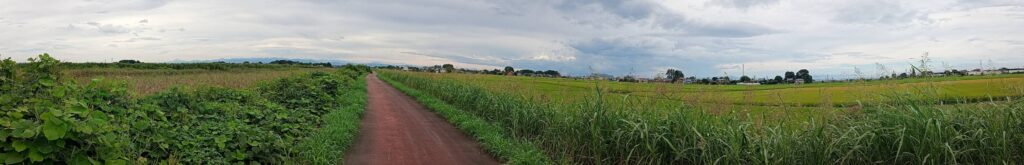 誰もいない道をひた走ります。見晴らしが良くて、ここでもパノラマ撮影。