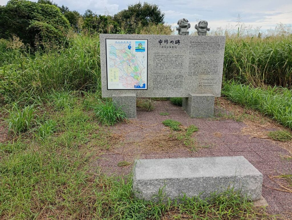 土手の一コマ。石碑の上の河童たちにほっこり。