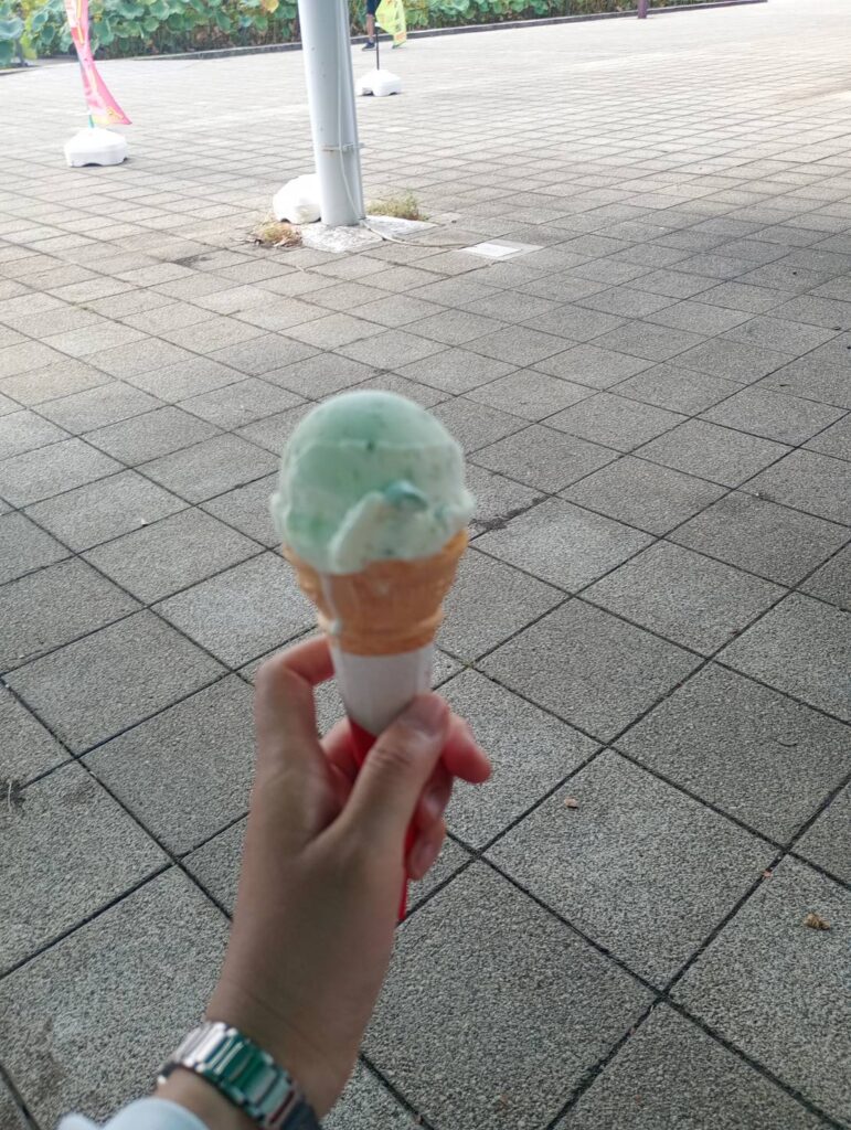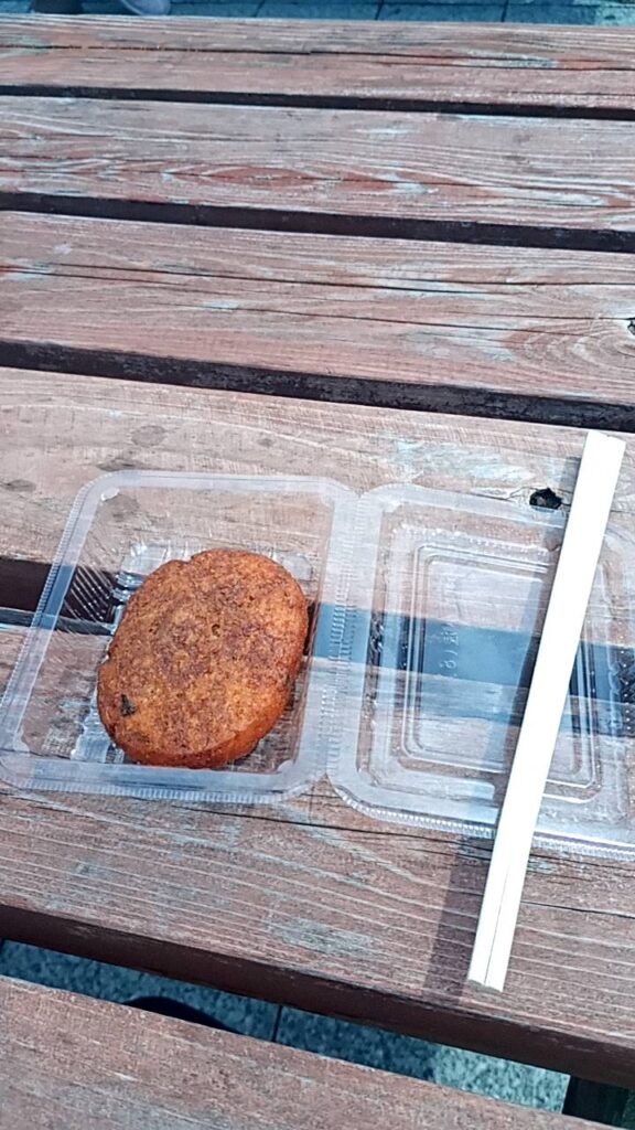 待ってる間、おやつをいただきます。行田名物、ゼリーフライと御当地枝豆アイスです。